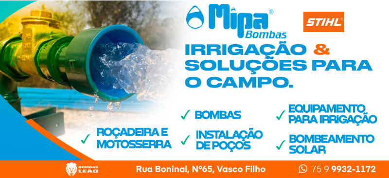 MIPA BOMBAS – INSTALAÇÃO DE POÇOS – EQUIPAMENTOS PARA IRRIGAÇÃO – BOMBEAMENTO SOLAR EM SEABRA
