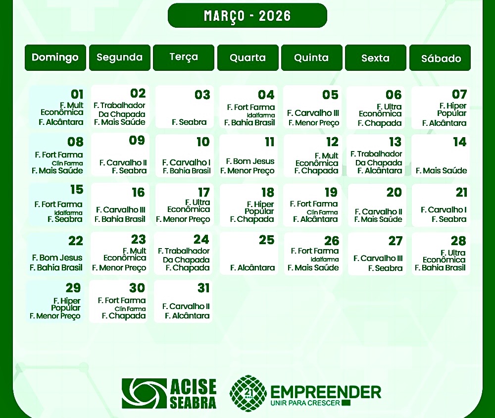 FARMÁCIAS DE PLANTÃO EM SEABRA